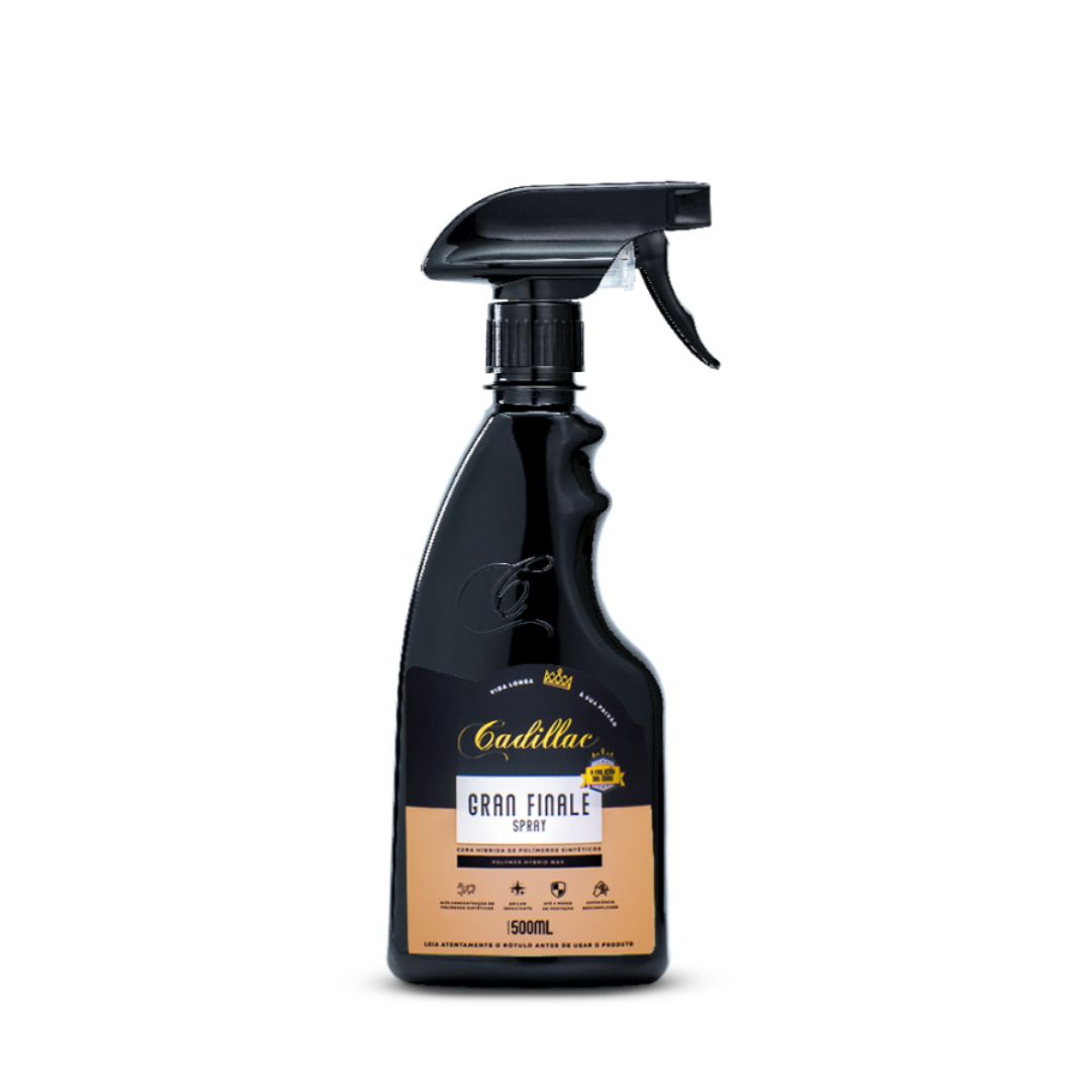 Gran Finale Spray Cera Híbrida Proteção 500ml Cadillac A Gran Finale é a evolução das ceras. Sua formulação possui concentração máxima de polímeros sintéticos de última geração que vão proporcionar proteção de até 4 meses, resistência a químicos, proteção UV e espetacular repelência à água. Essa tecnologia combinada as ceras de carnaúba tipo exportação e cera de abelha vão agir resgatando o brilho e a intensidade de cor da superfície. Facilidade de aplicação Não possui tempo de cura, aplicou, espalhou, lustrou e tá pronto.